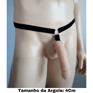 • Cinto Em Elástico Preto Anel Peniano Com Argola em Aço 4,5Cm