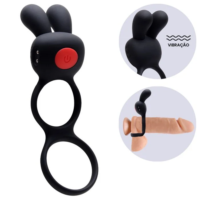 Anel Peniano Duplo com Vibrador Forte Estimulador Clitoriano