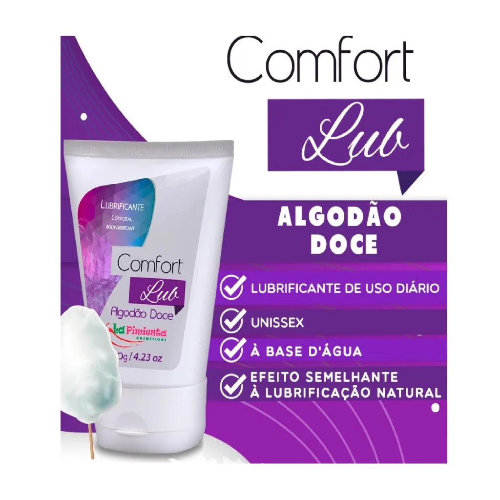 Lubrificante Corporal Comfort Lub Beijável 120G Algodão doce
