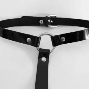Arreio em Colar Harness Feminino Colar e Cinturão Em Couro Preto