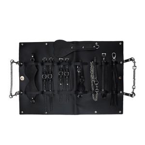 Kit Bondage com 7 Peças em Couro Sintético Preto – BONDAGE KITS