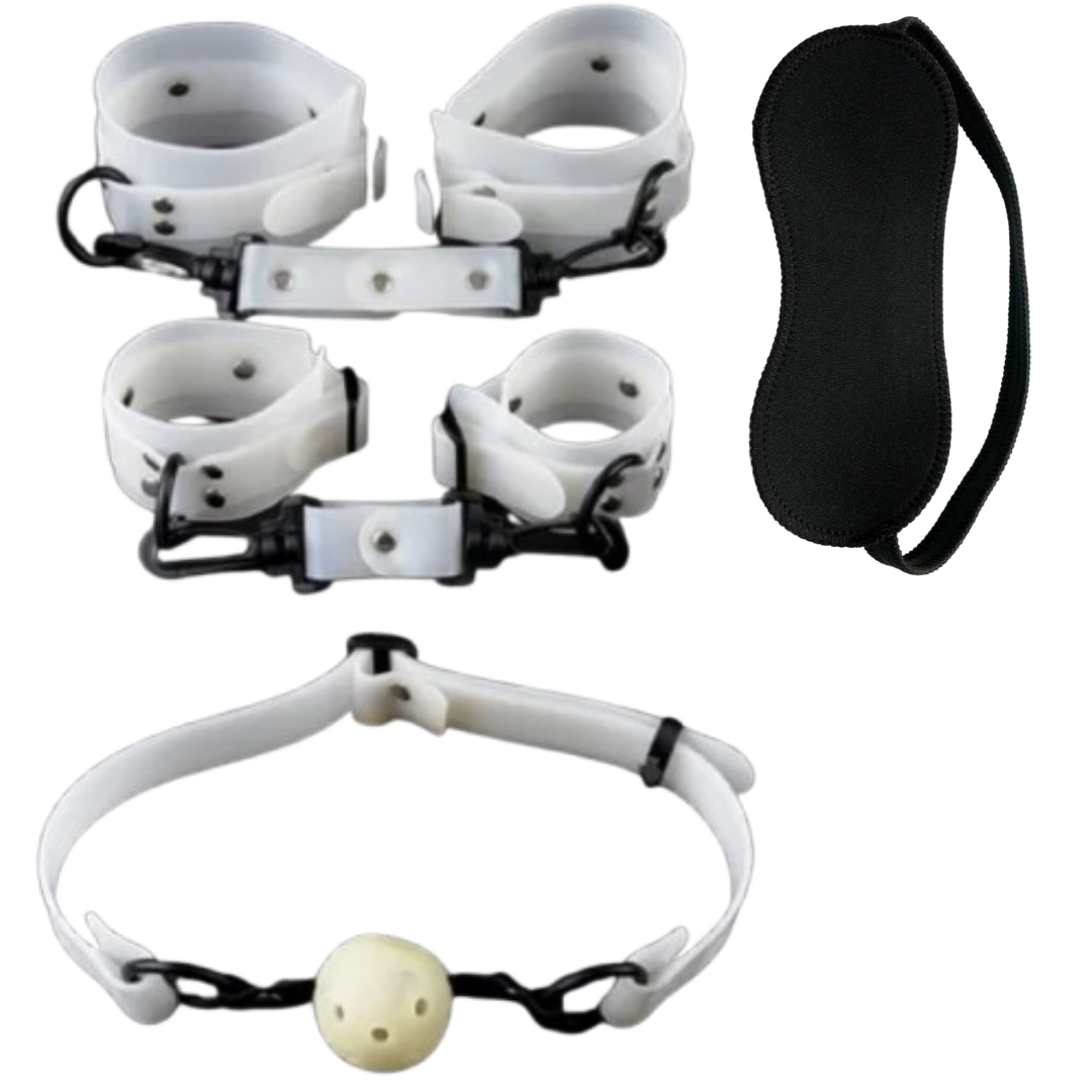 Kit Bondage Algema para Pulso e Pescoço com mordaça de Bola – Luxo