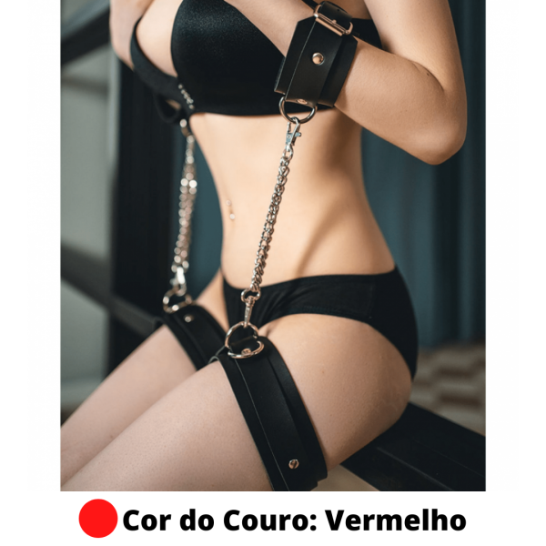 Algemas Vermelha Para Coxas e Punhos Em Couro Com Correntes
