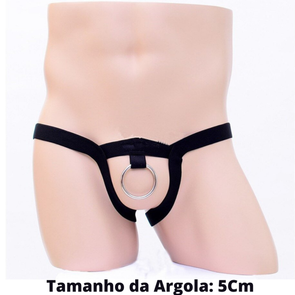 Anel Peniano Com Cinto Elástico Preto E Argola Aço 5Cm