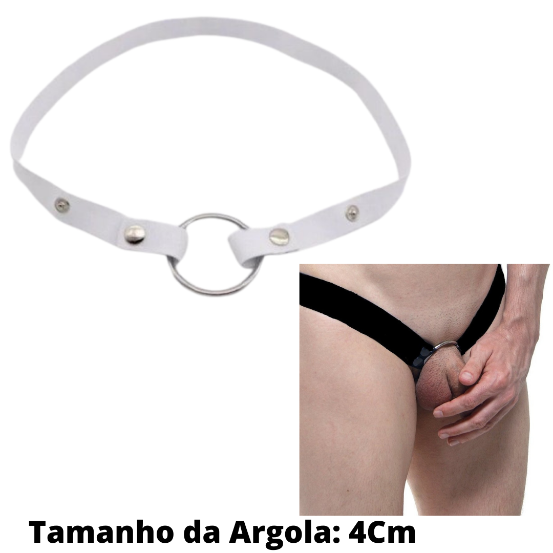 Anel Peniano em Elástico Branco Ajustável Com Argola Aço 4Cm
