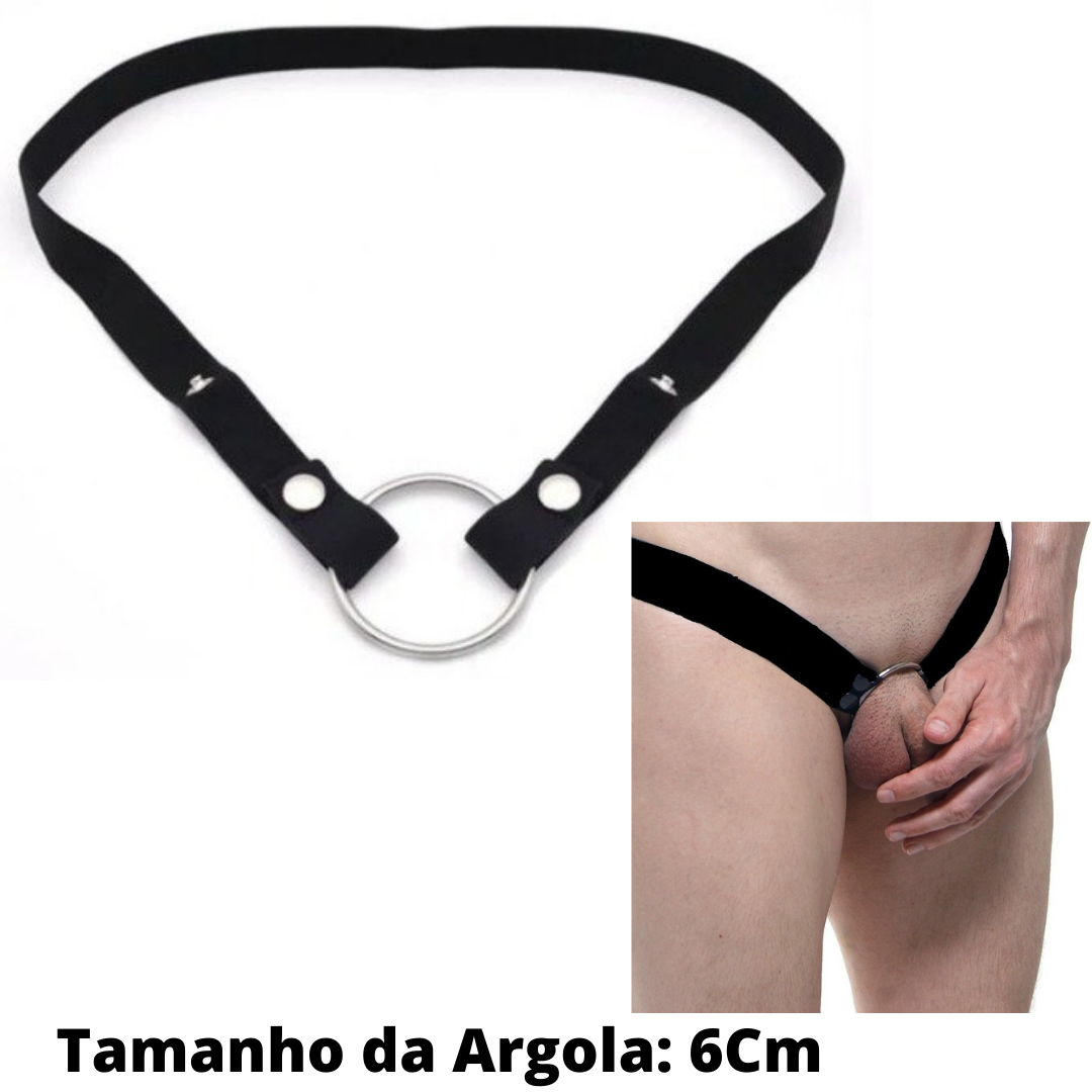 Anel Peniano Com Cinto em Elástico Preto Ajustável Com Argola 6Cm