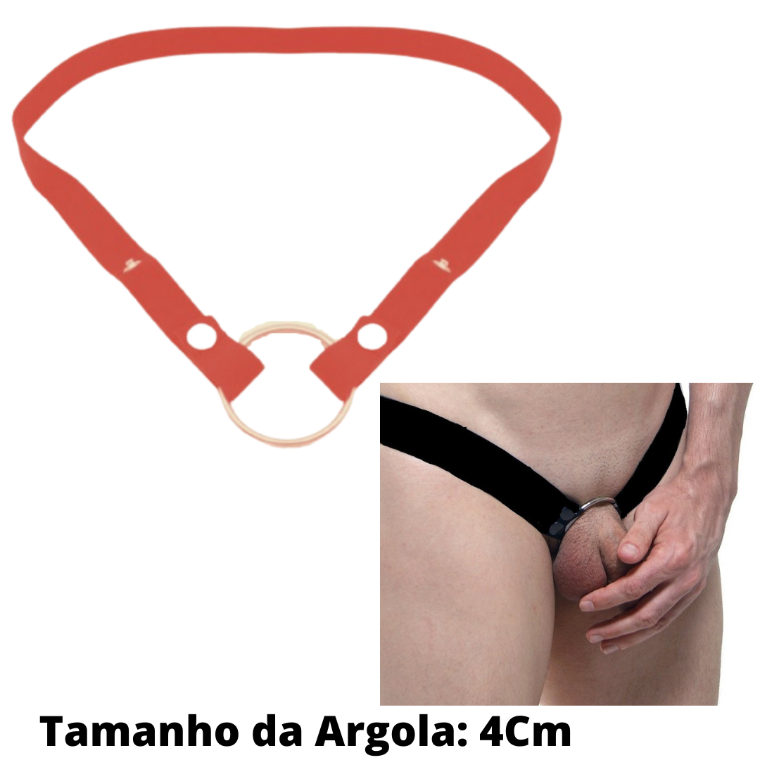 Anel Peniano Com Cinto em Elástico Vermelho Ajustável Com Argola 4Cm