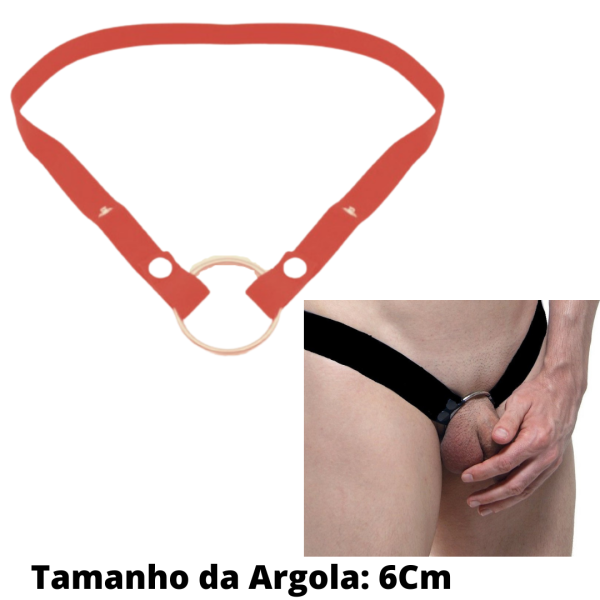 Anel Peniano Com Cinto em Elástico Vermelho Ajustável Com Argola 6Cm