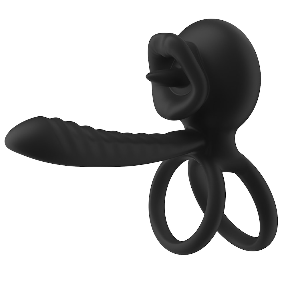 Anel Peniano Duplo e Meia Capa com Controle por Aplicativo.Um anel peniano duplo com estimulador que eleva o nível das suas experiências íntimas. Feito de silicone suave e recarregável, este dispositivo não é apenas confortável e seguro ao toque, mas também oferece uma durabilidade excepcional para momentos prolongados de prazer.O diferencial de anel reside na sua capacidade de se conectar via Bluetooth, permitindo que seja controlado de forma inovadora por um aplicativo no seu smartphone. Isso abre um universo de possibilidades, com 9 modos de vibração que podem ser ajustados e personalizados através da tela do seu telefone, transformando-o em um controle remoto interativo para o seu prazer.Ele também conta com um língua, para estimular o clitóris.Para que seu prazer chegue a níveis elevados e você consiga ter orgasmos múltiplos.