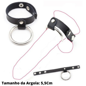 Anel Peniano Em Couro Preto Com Argola Aço 6Cm Ajuste em botões
