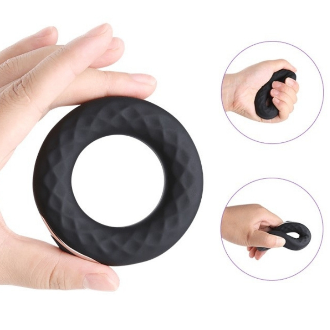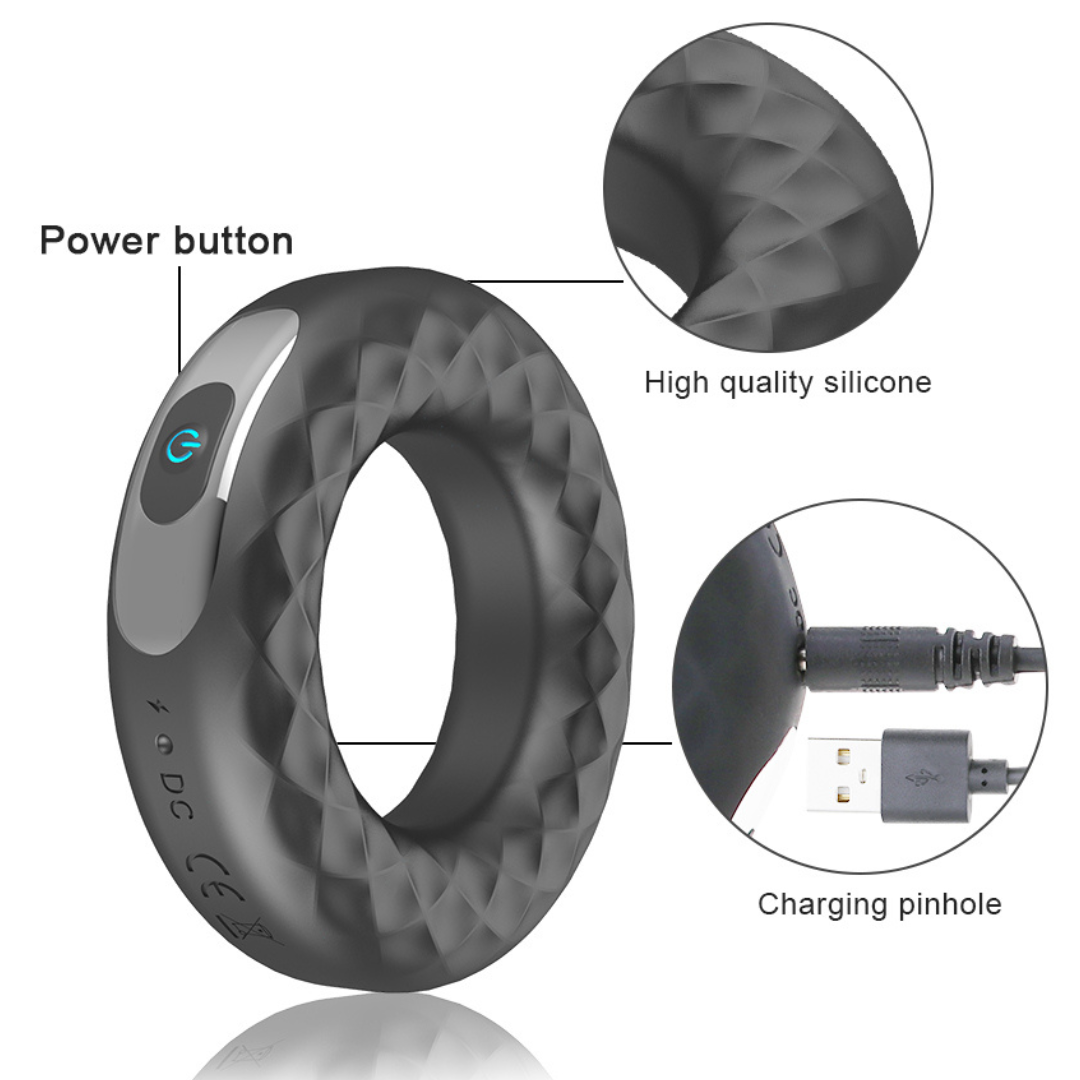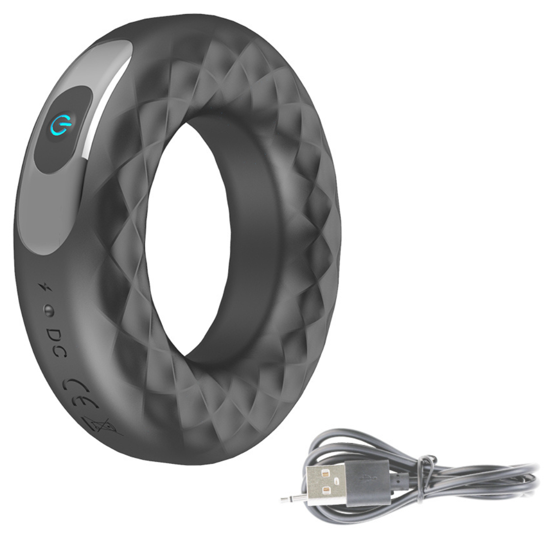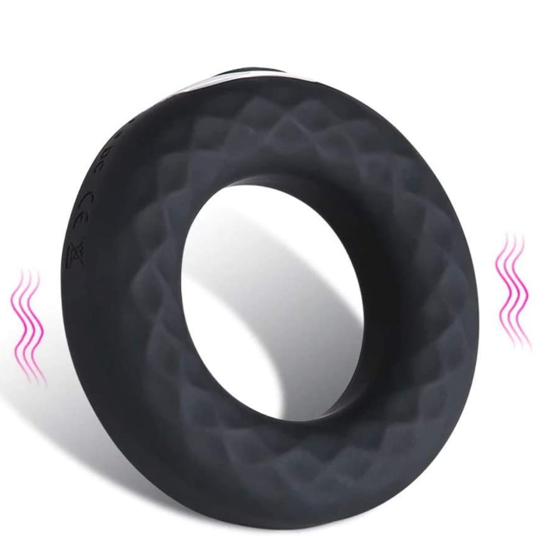 Anel Peniano Em Silicone Preto Com 10 Vibrações Recarregável