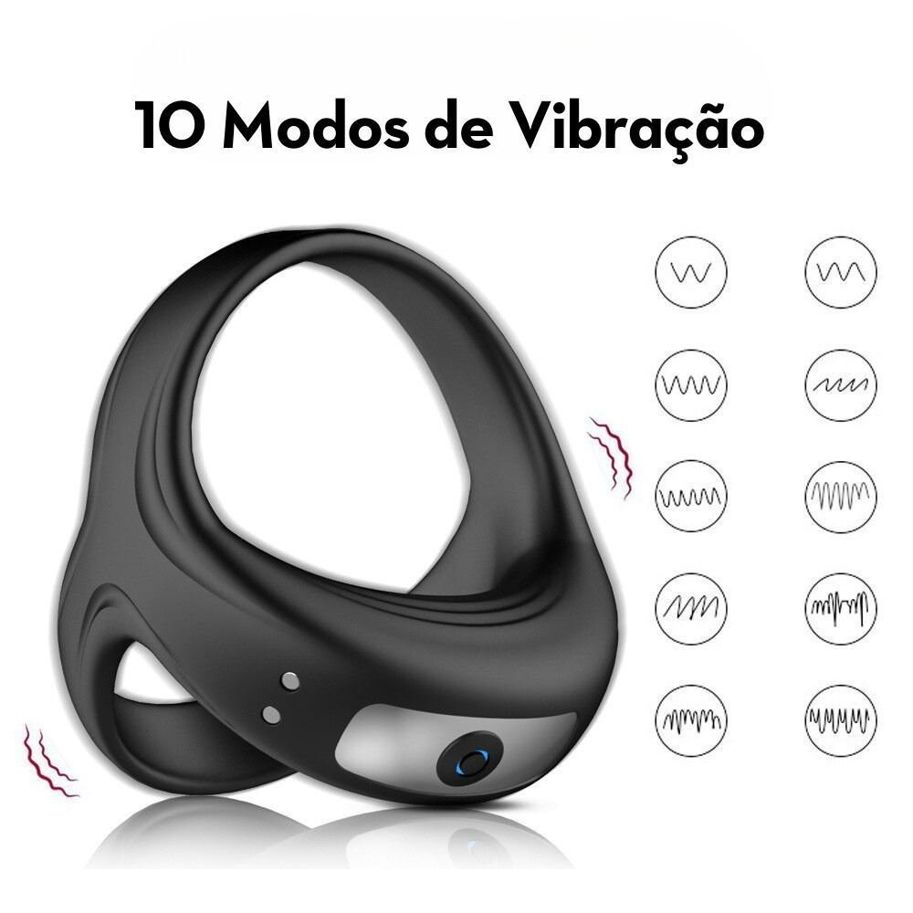 O anel peniano com vibração conta com um toque suave, aveludado, detalhes metalizados e relevos estimuladores.