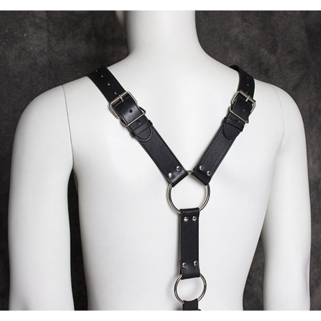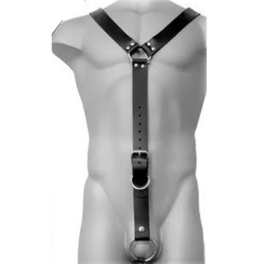 Arnês Masculino Em Couro Preto Com Anel 4 cm Peniano e Regulagem
