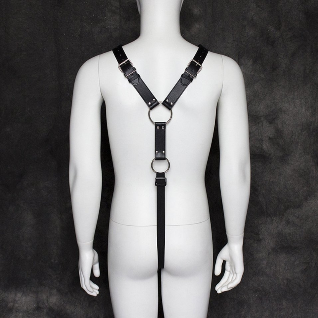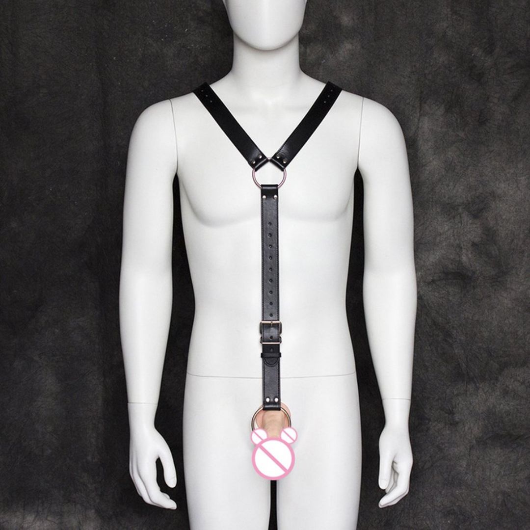 Arnês Masculino Em Couro Preto Com Anel 6 Cm Peniano e Regulagem
