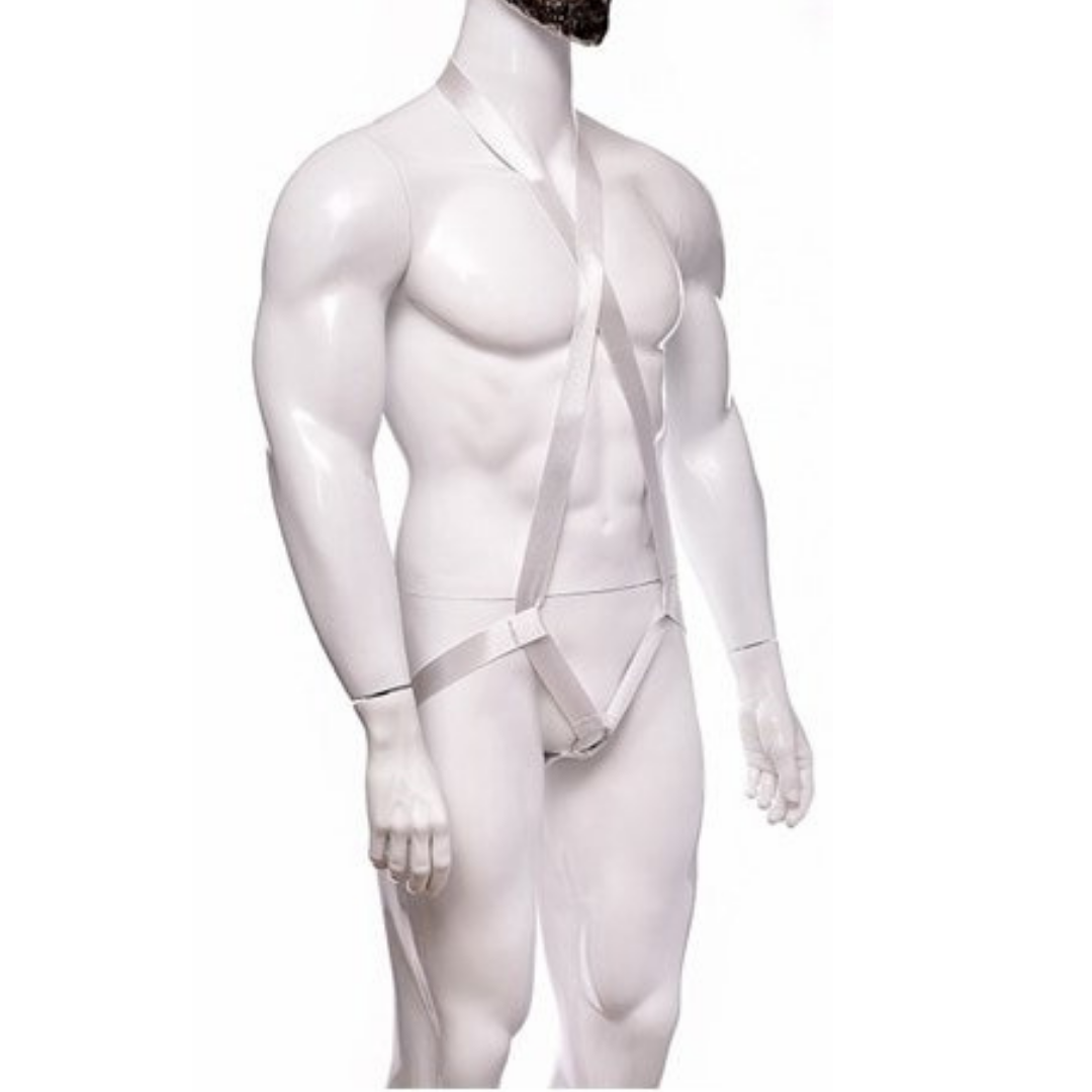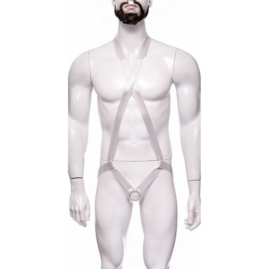 Arreio Arnês Masculino em Elástico Branco Com Anel 3,5 Cm Peniano