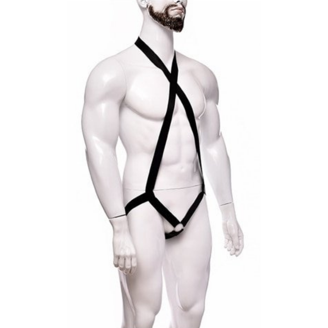 Arreio Harness Masculino Elástico Preto Com Argola 4,5 Cm Peniano