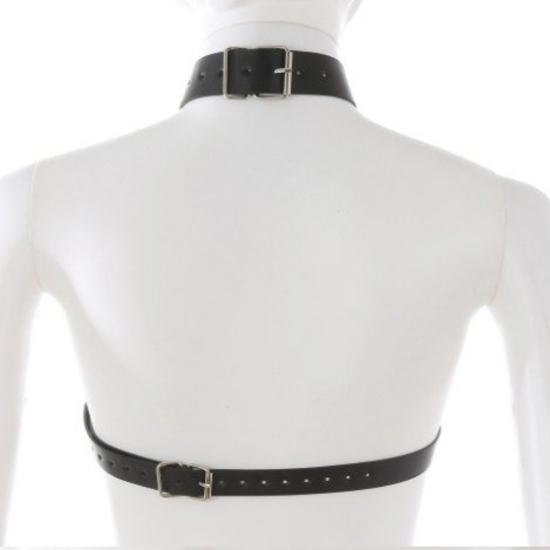 Arreio Em Colar Feminino Couro e Argolas Sutiã Fetiche Sexy