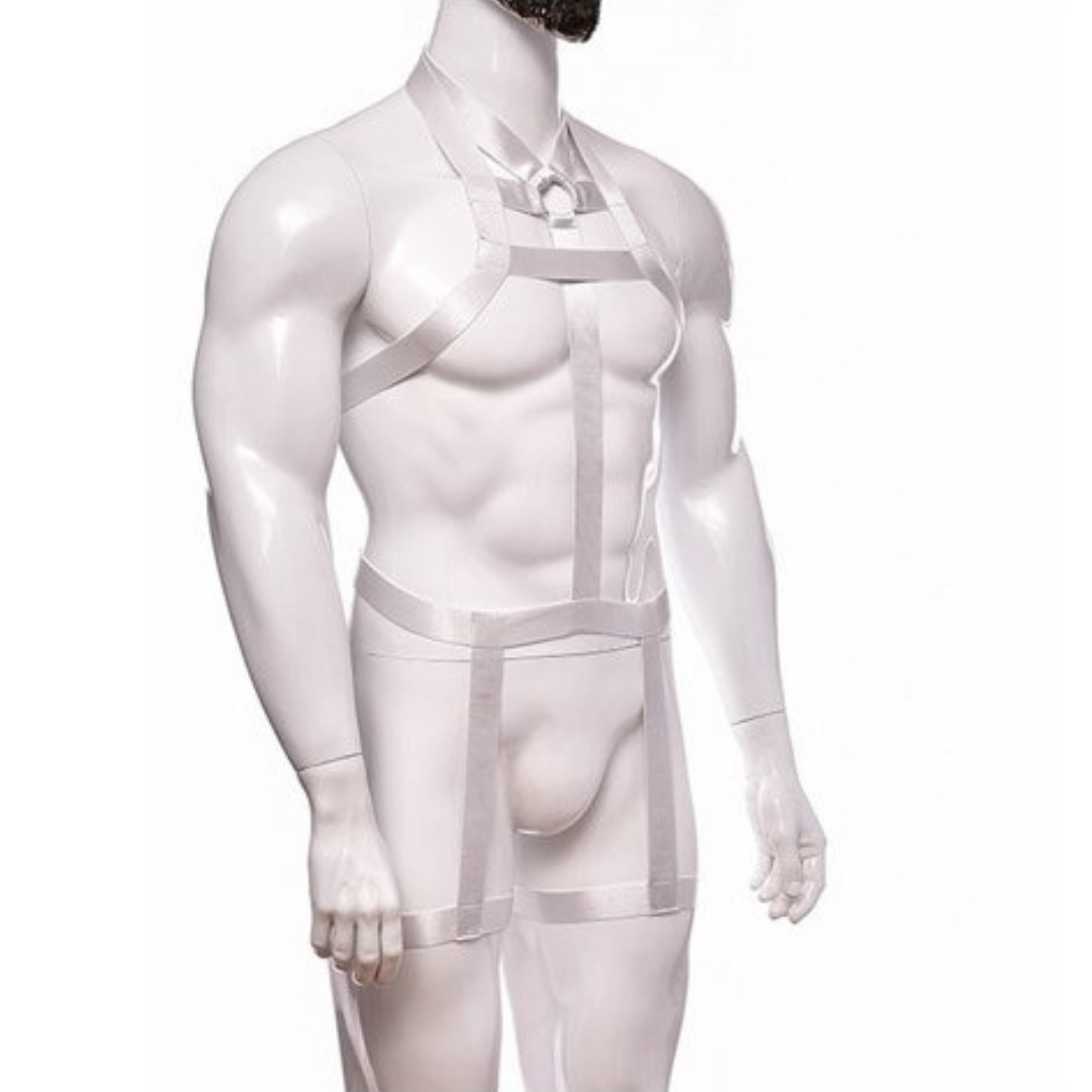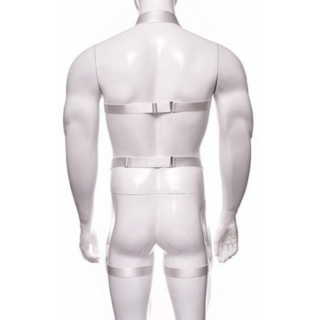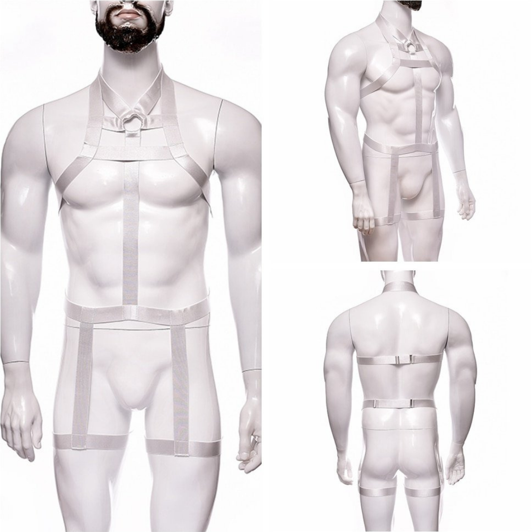 Arreio Masculino Em Elástico Branco Arnês Corpo Inteiro