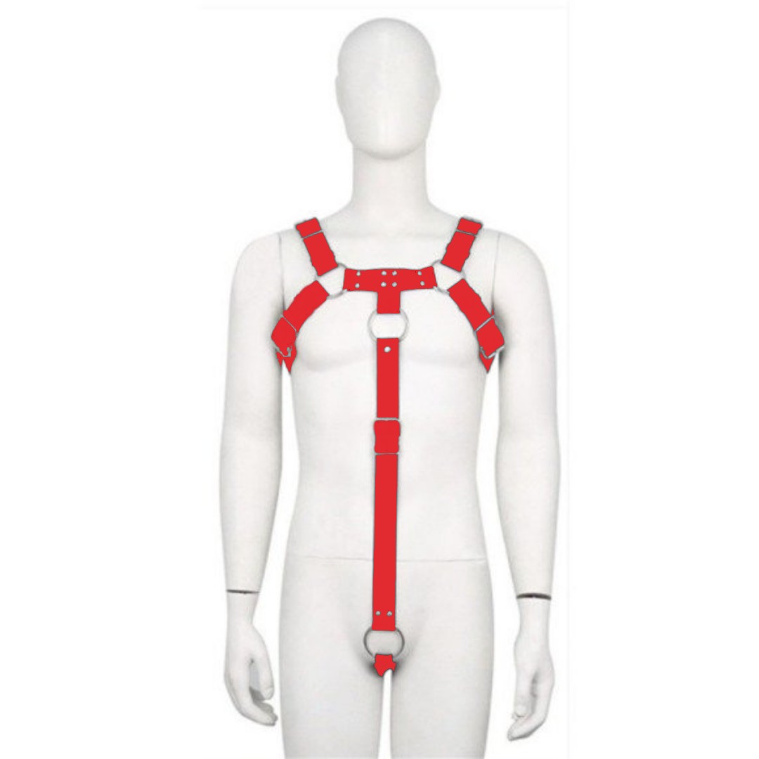 Arreio Peitoral Masculino Vermelho Com Anel Peniano 5cm e Metais
