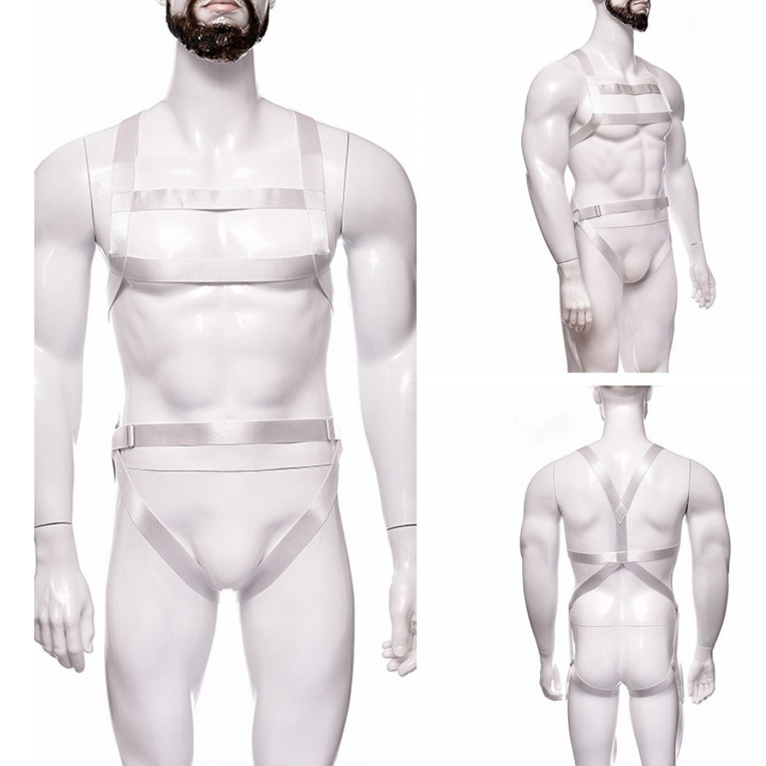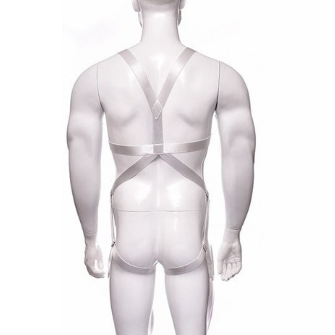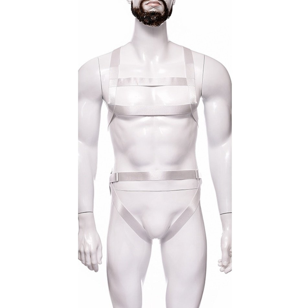 Body Arnês Masculino em Elástico Branco Com Cinto e Peitoral