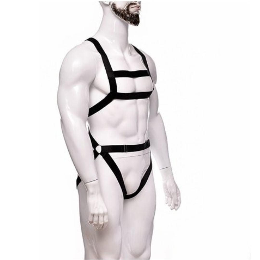Body Arnês Masculino em Elástico Preto Com Cinto e Peitoral