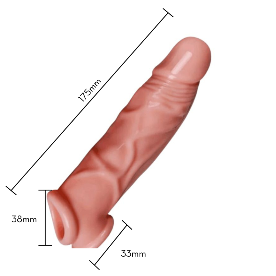 Capa peniana realista de silicone macio com veias saltadas e abertura para os testículos