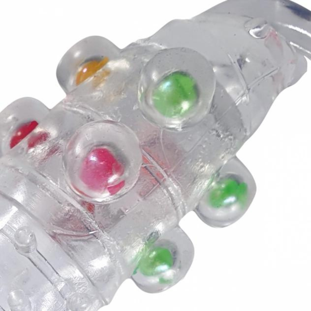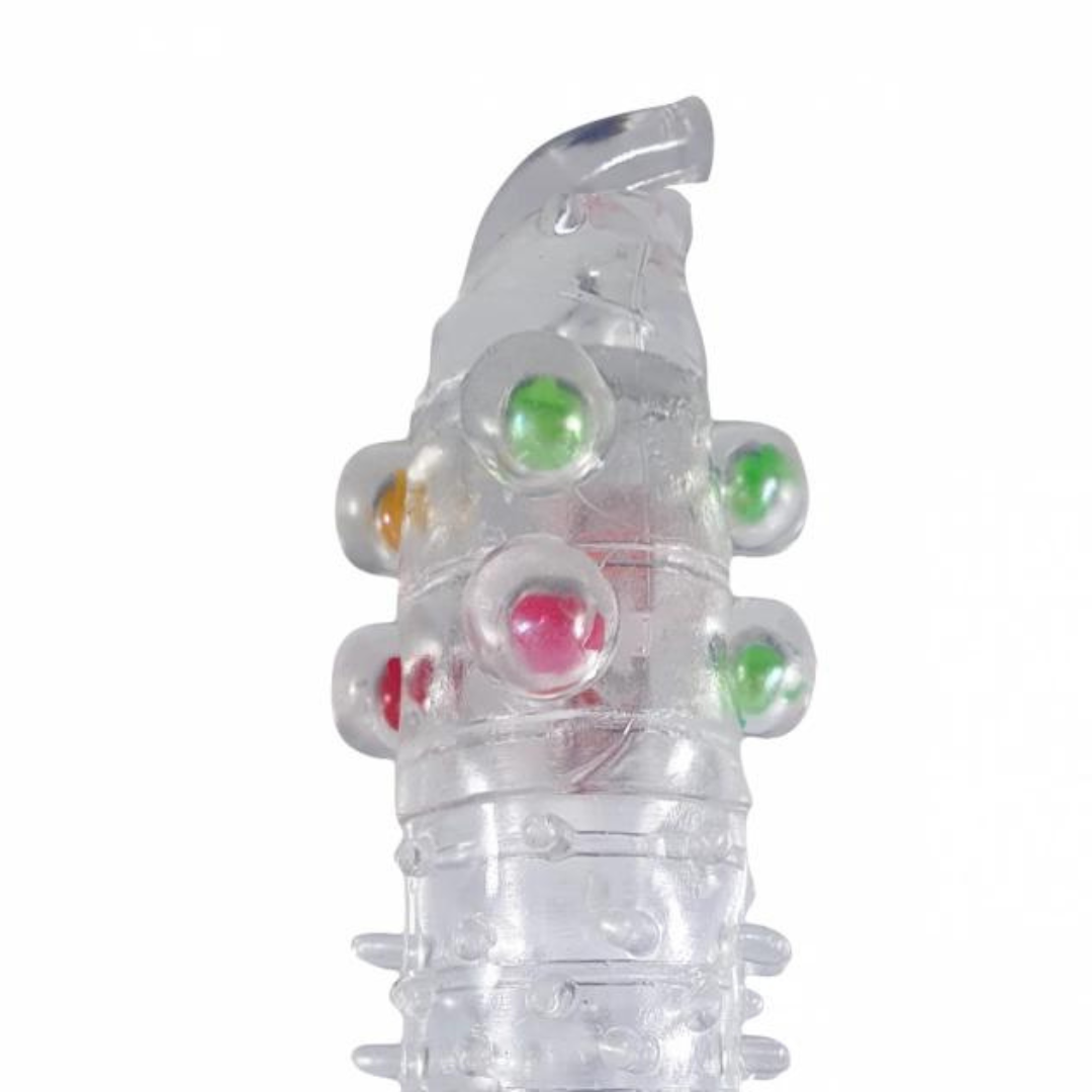 Capa peniana com cerdas massageadoras e pérolas estimuladoras.