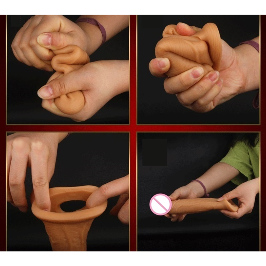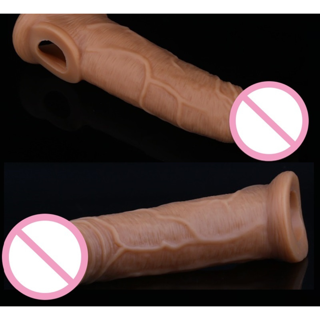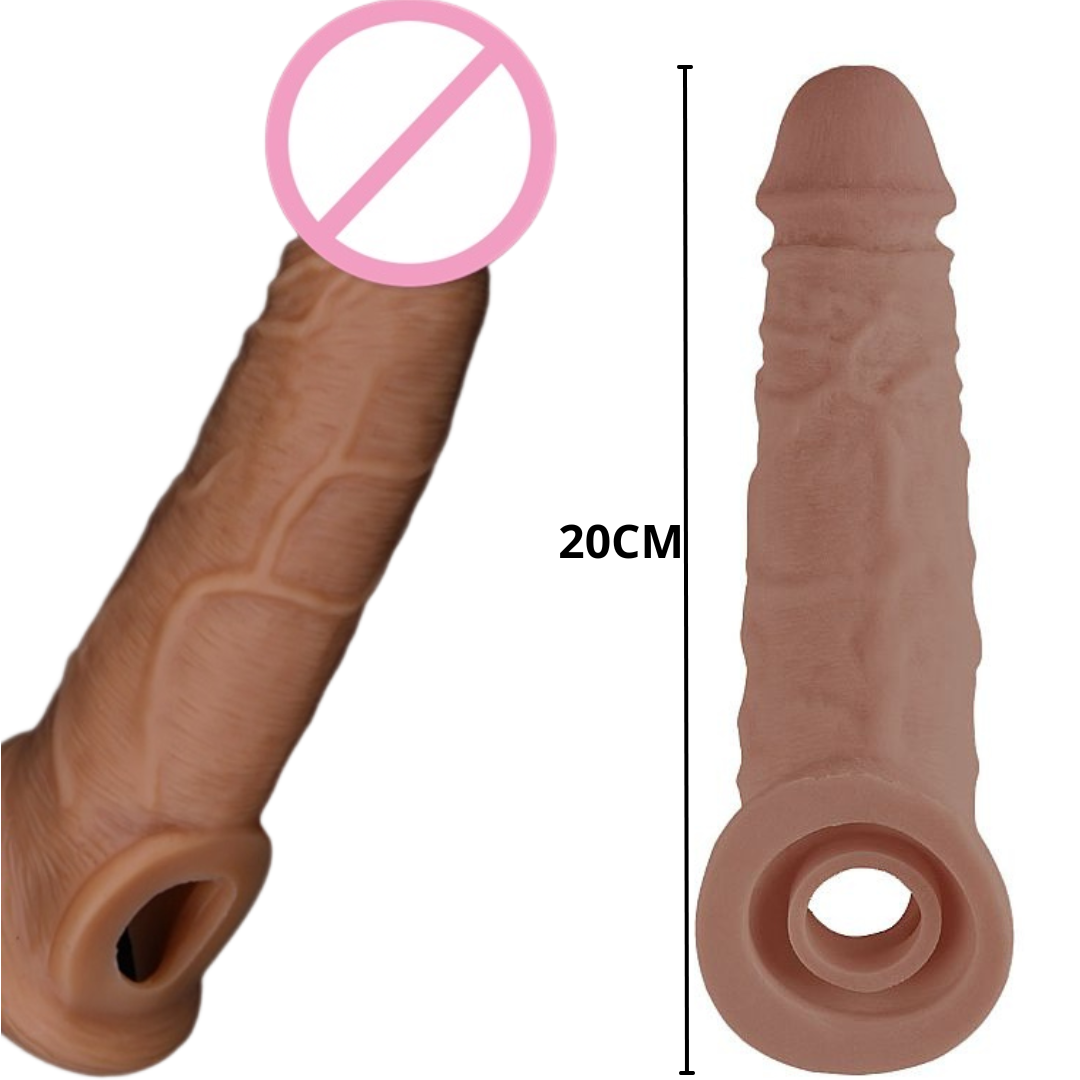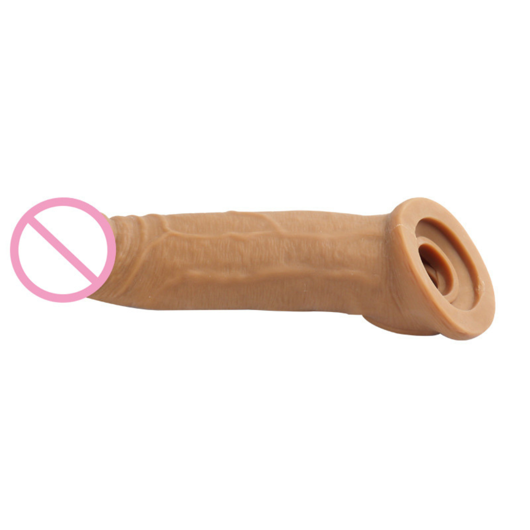 Capa peniana com anel de escroto, emborracha ultra macia e flexível, possui glande definida e uma textura realística de veias salientes ao longo do corpo,