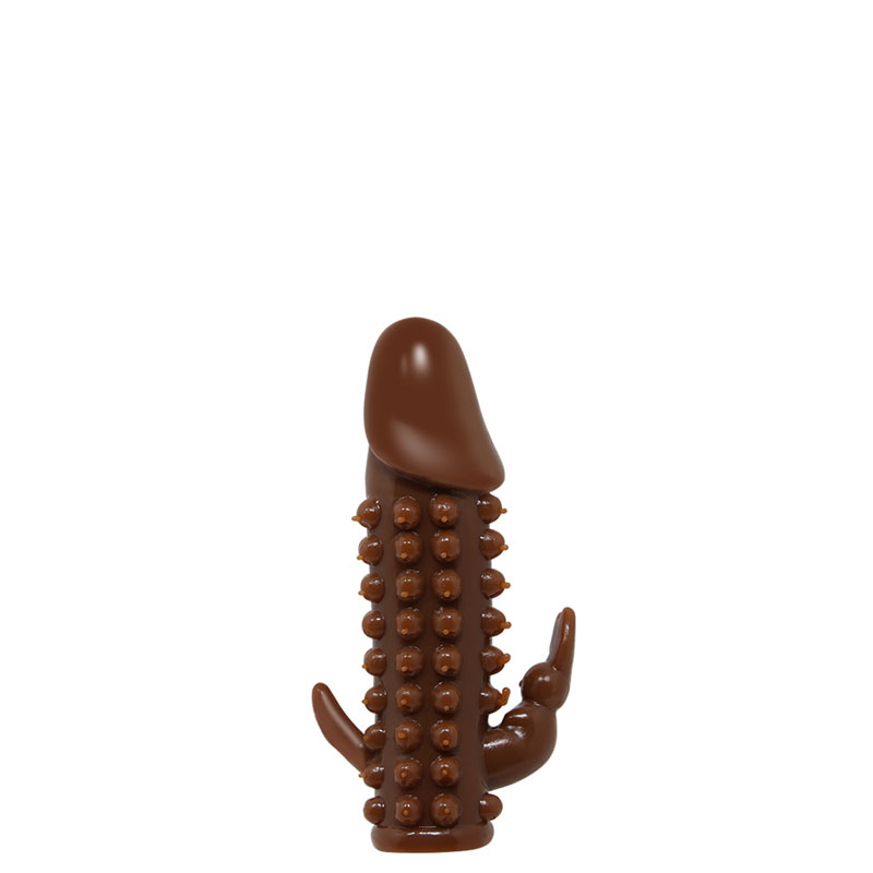 Capa peniana extensora com nódulos massageadores e estimulador clitoriano.