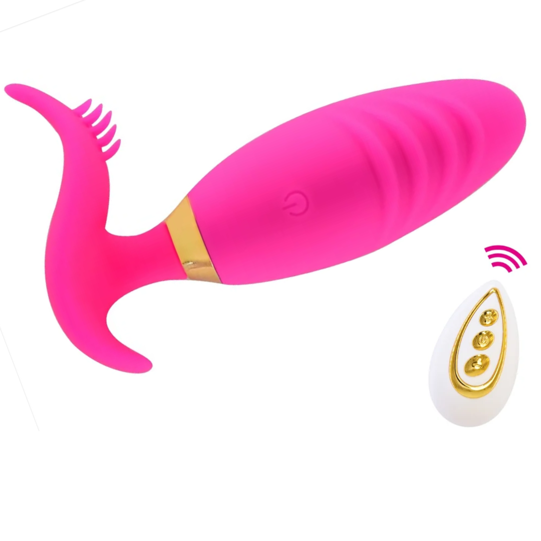 Cápsula vibratória com relevos massageador, cerdas estimuladoras de clitóris e detalhes metalizado. Possui toque suave e controle remoto sem fio.
