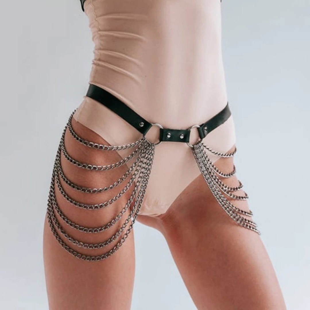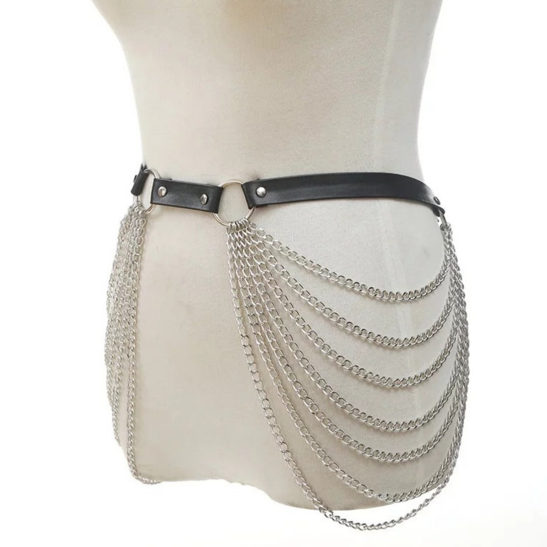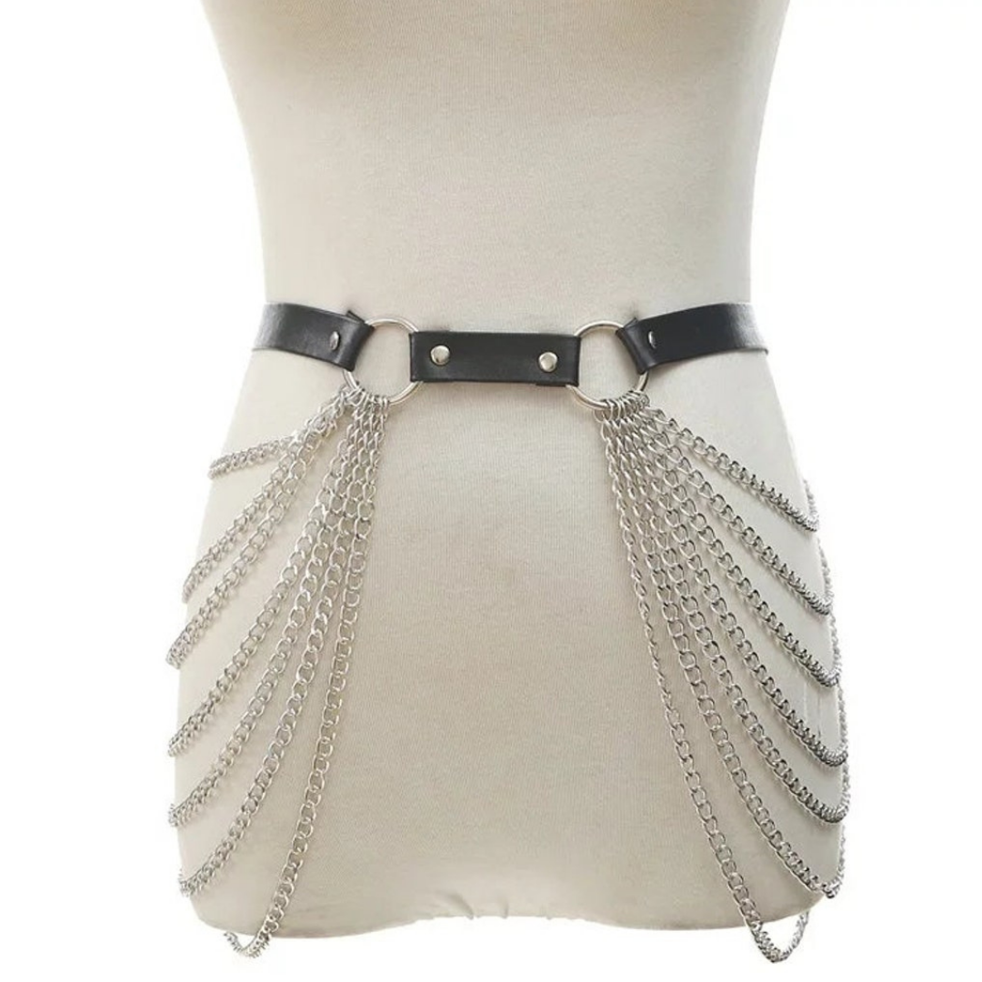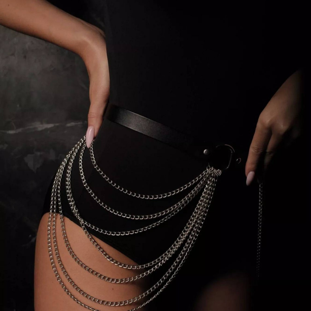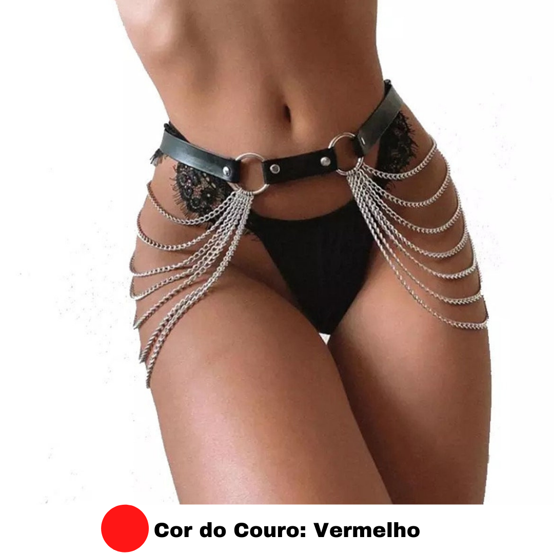 Cinto Arreio Sexy em Couro Vermelho Com Correntes Harness BDSM