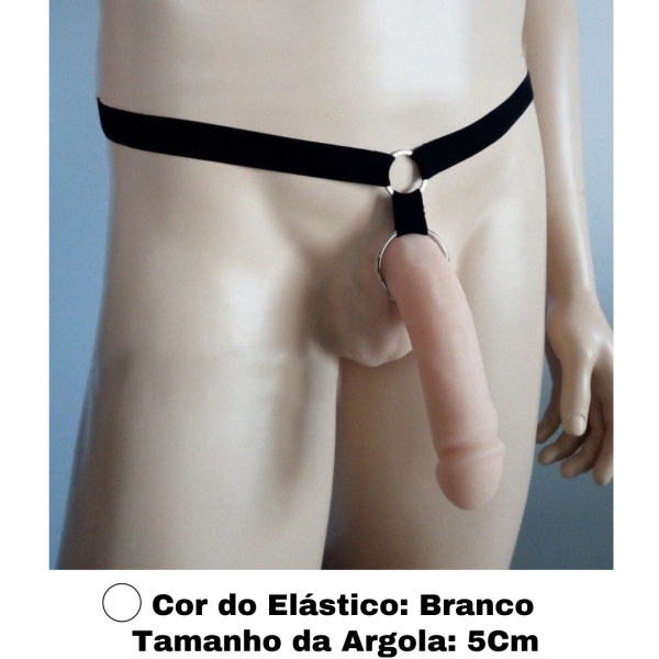 Cinto em Elástico Branco Com Anel Peniano Em Argola 5Cm