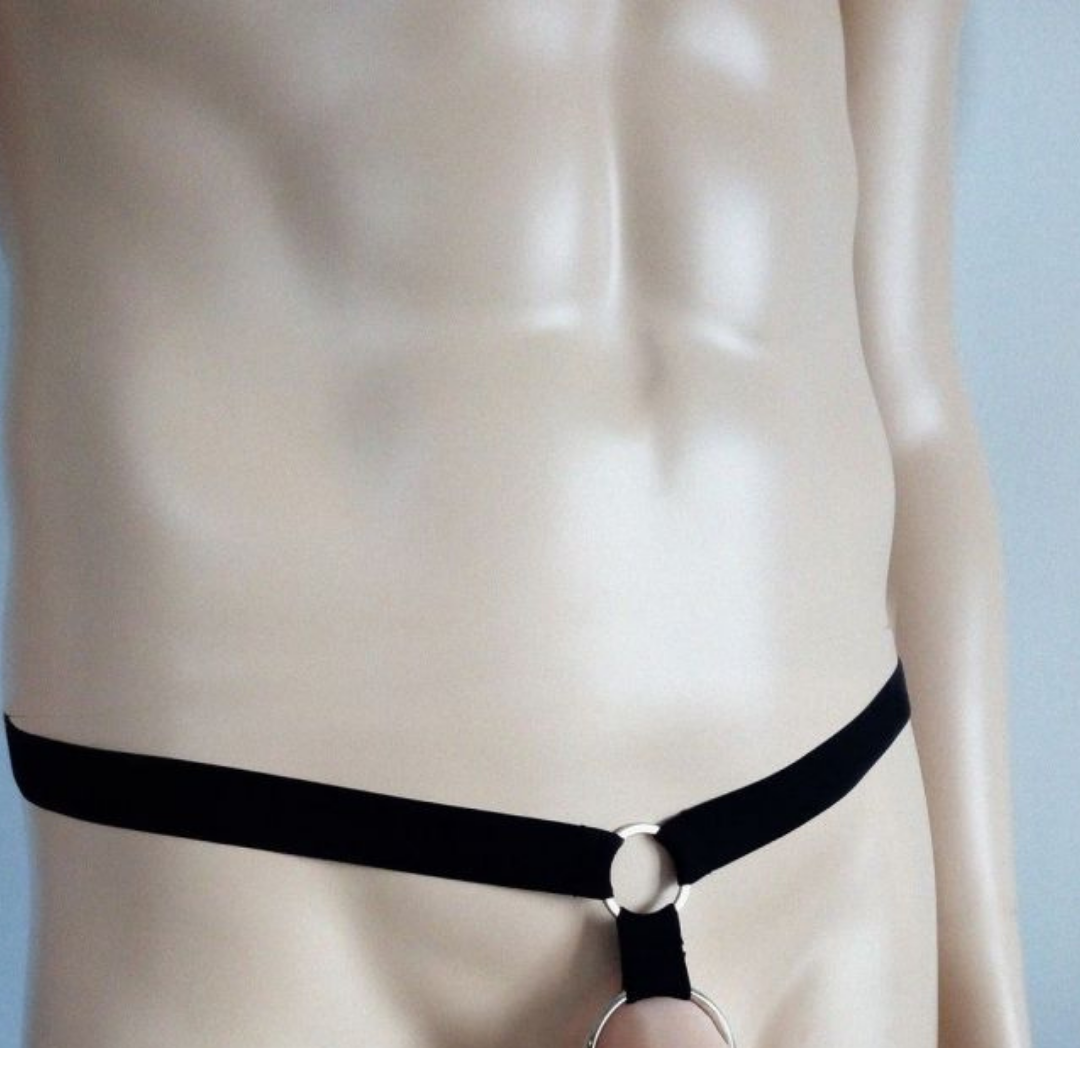 Cinto em Elástico Branco Com Anel Peniano Em Argola 6Cm