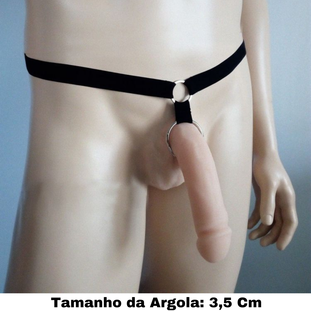 Cinto Em Elástico Preto Anel Peniano Com Argola em Aço 3,5Cm