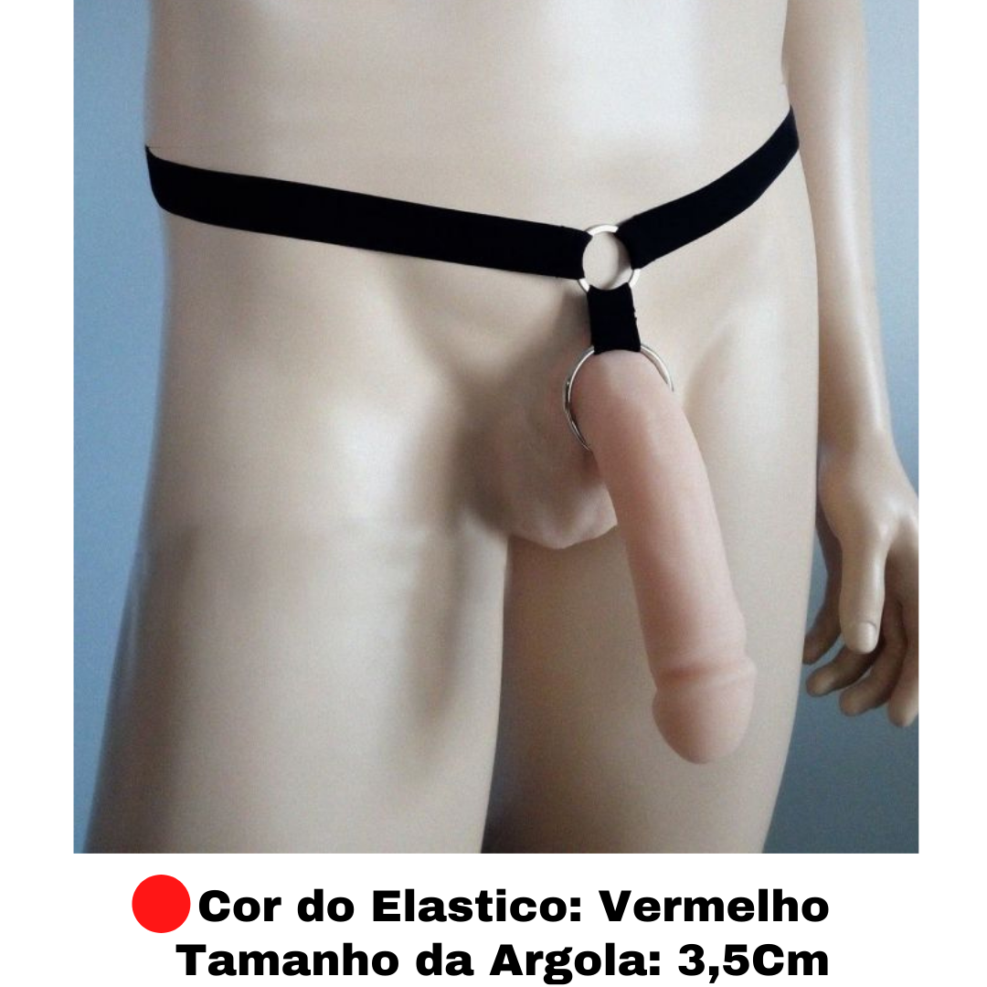 Cinto Em Elástico Vermelho Anel Peniano Com Argola em Aço 3,5Cm