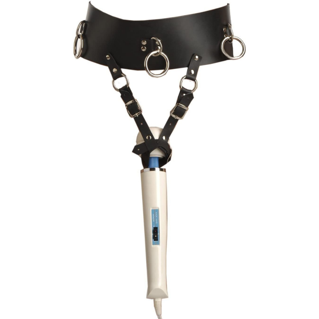 Cinto Feminino em Couro com Suporte Para Vibrador Varinha Magica