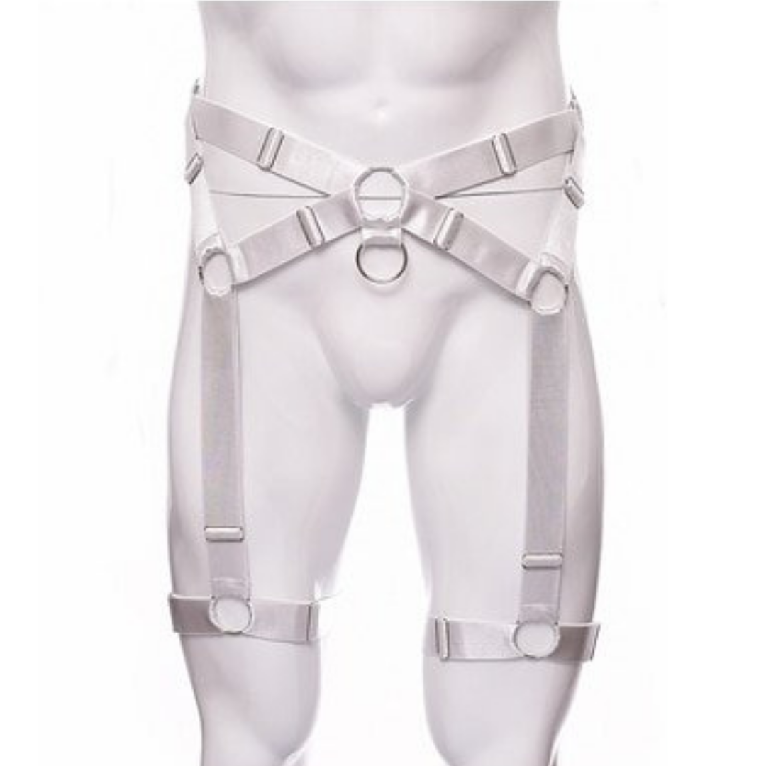 Cinto Harness Em Elástico Branco Com Perneira Ajustável