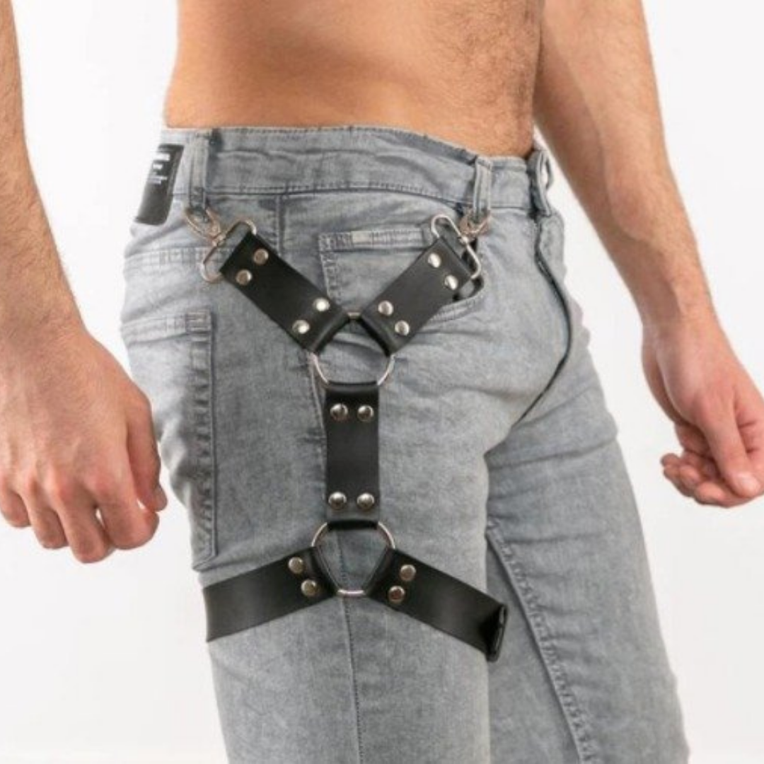 Cinto Para Coxa Dupla Arnês Masculina Sexy Em Couro Branco