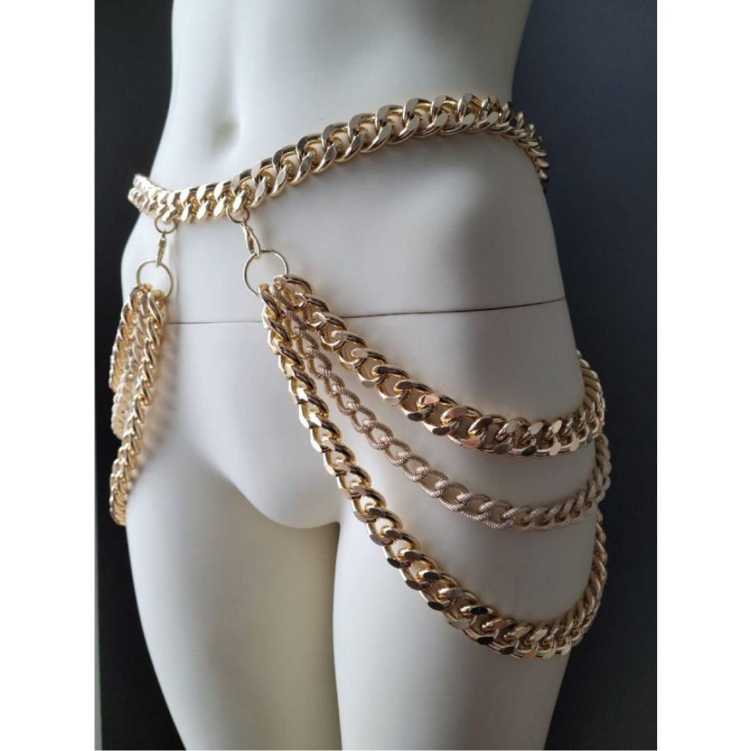 Cinto Sexy Arnês Com Correntes Laterais Grossa Dourado Sado