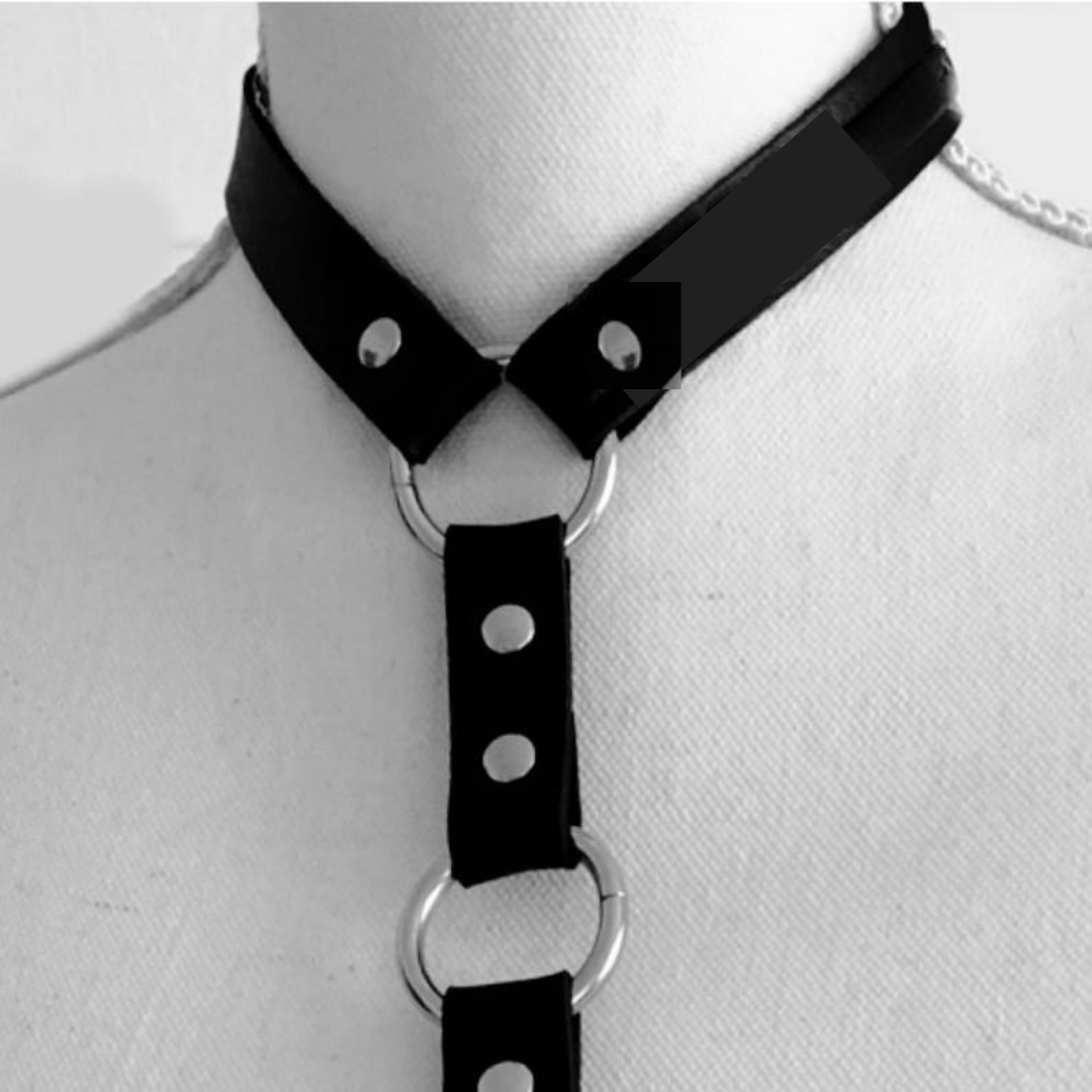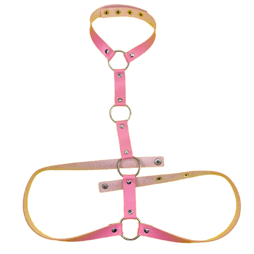 Colar Arreio Harness Com Cinturão Em Couro Rosa Detalhes em Argolas