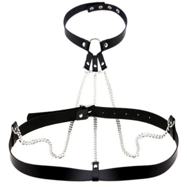 Colar Arreio Harness Com Correntes em Couro Branco BDSM
