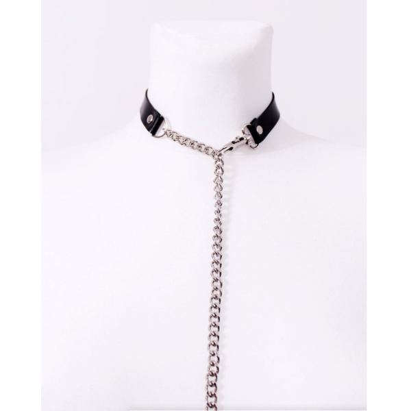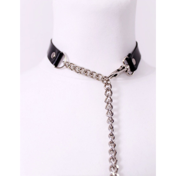 Colar Em Couro Branco Com Correntes Prata Mosquetão Ajustável