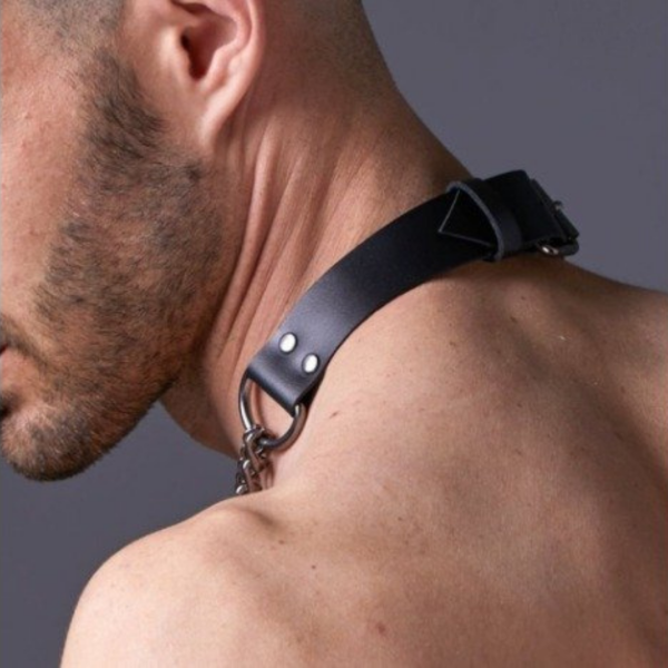 Colar Masculino Erótico Com Correntes Couro Branco e Ajuste