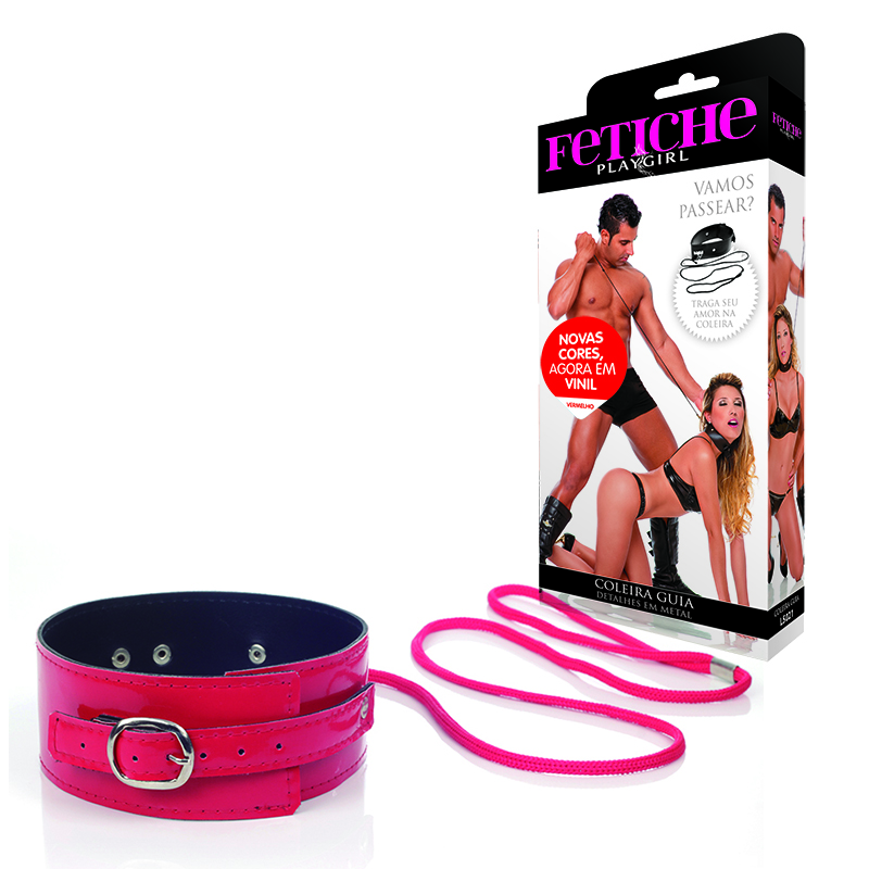 Coleira Erótica em Vinil Vermelha com Guia – Fetiche Erótico