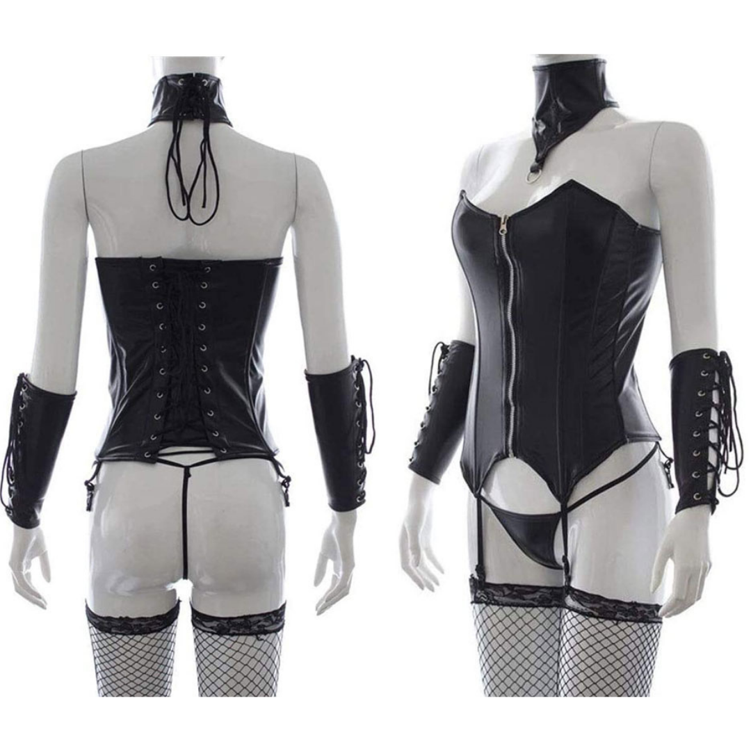 Corselet Sado Feitiche com Cinta Liga, Munhequeira e Coleira