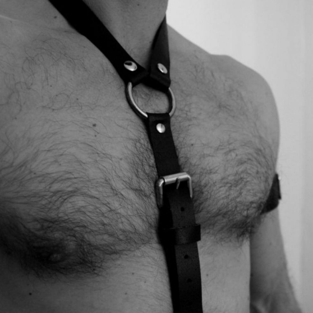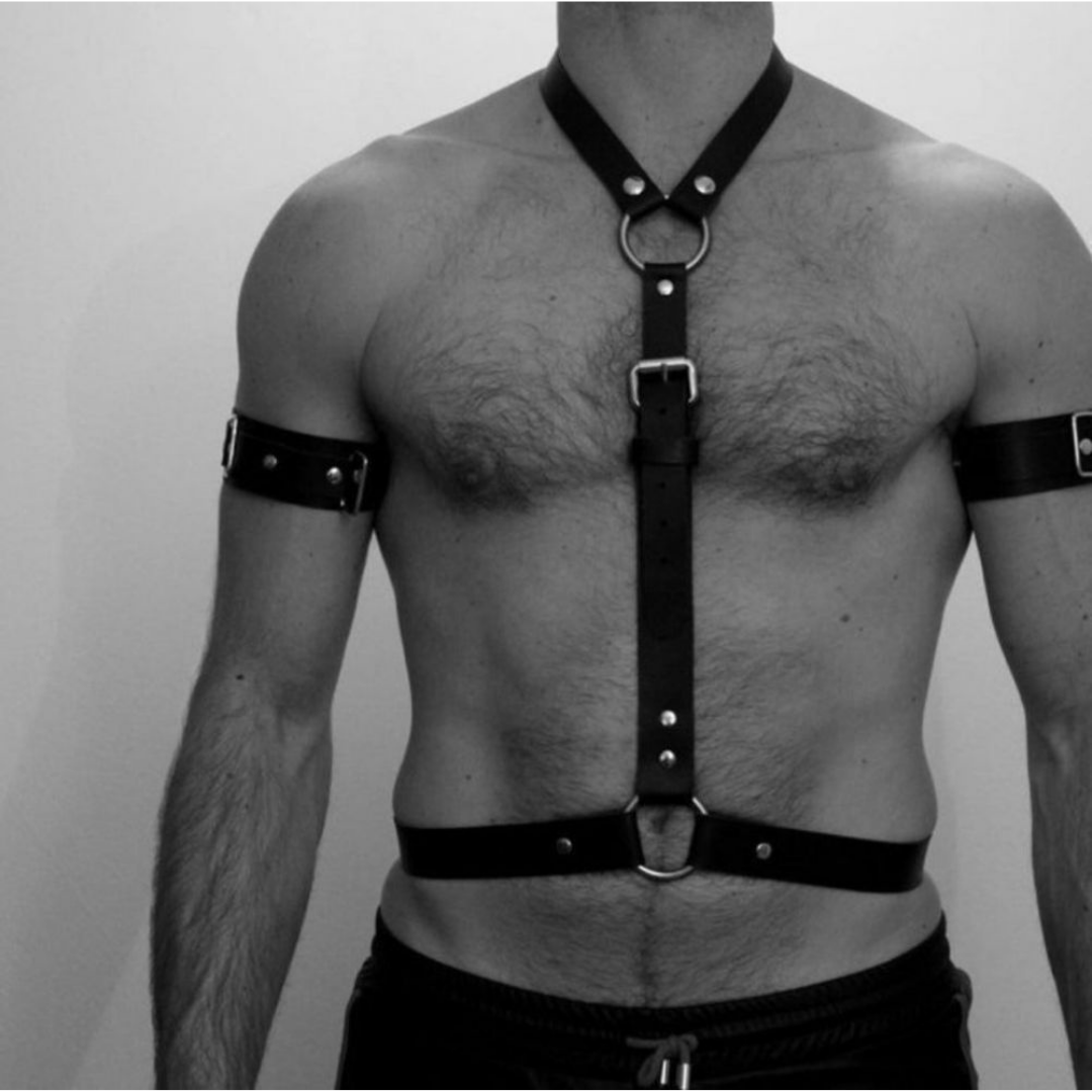 Harness Masculino em Couro Vermelho Com Braceletes e Regulagem