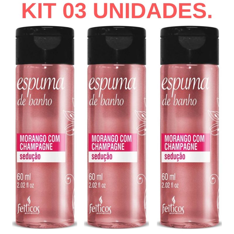 Kit 03 Espuma de Banho Morango com Champagne Sedução 60ml Feitiços – Sexshop