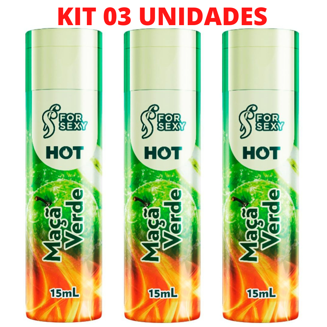 Kit 03 Gel Hot Comestível de Maça Verde Saboroso 15Ml ForSexy