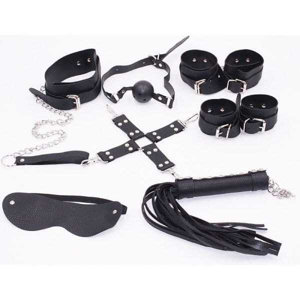 Kit bondage com 7 peças em couro sintético.