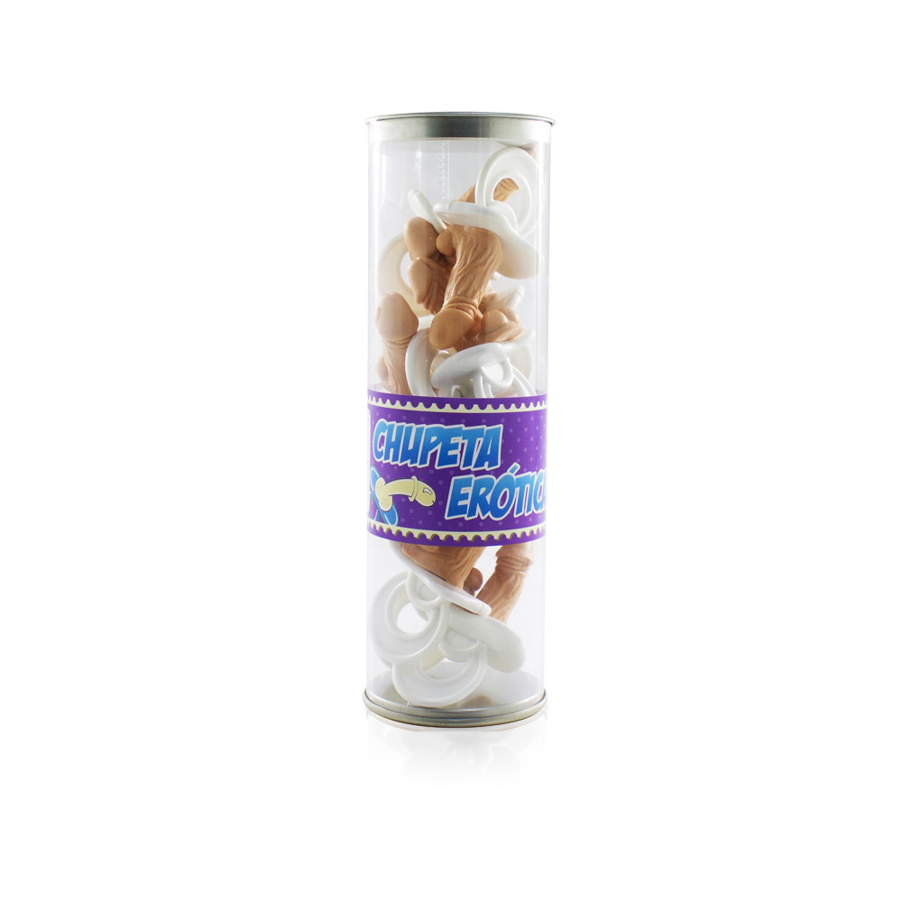 Chupetas divertidas, pote com 10 unidades na cor branca.